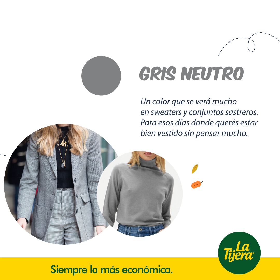 - Gris neutro: versátil y fácil de combinar, este color es la base ideal para cualquier outfit de invierno